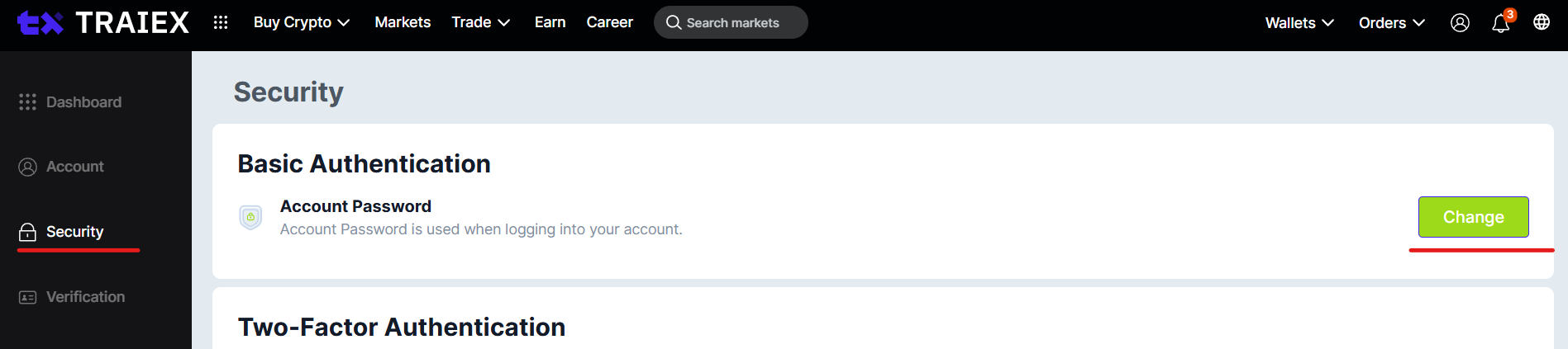 Please login to Traiex account -> Go to dashboard -> Security-> Password -> Changed