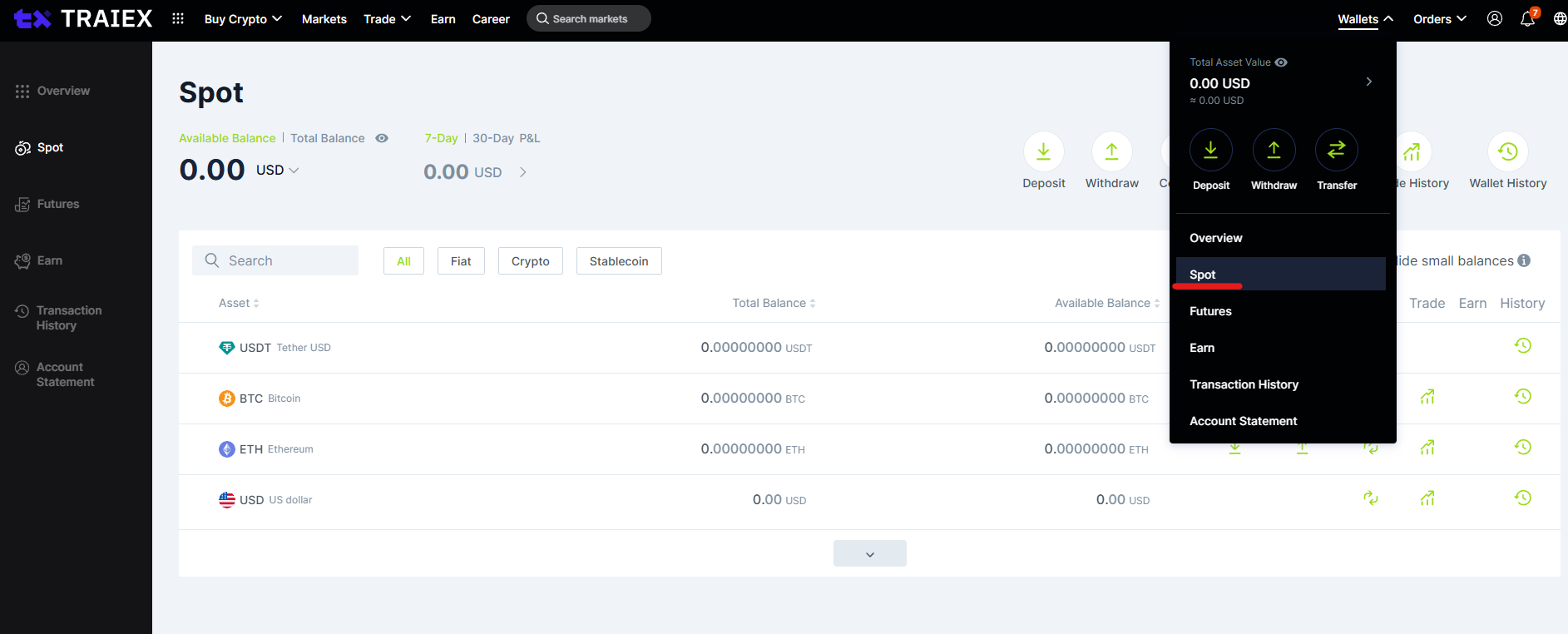 Here is a step-by-step guide to depositing cryptocurrencies on Traiex: