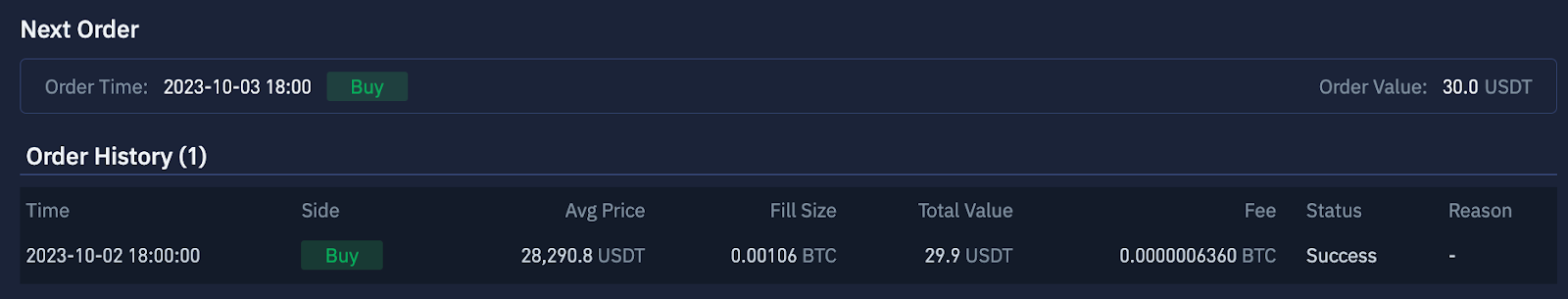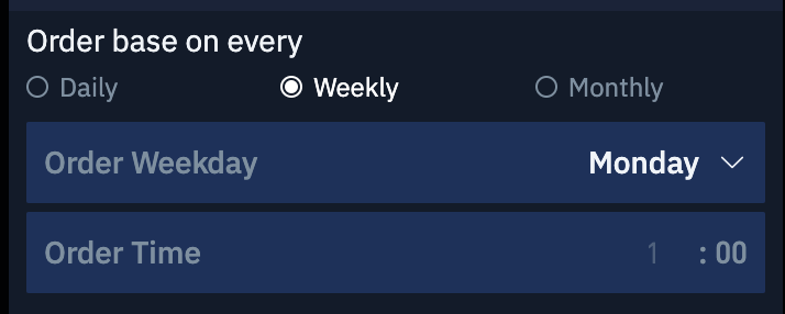 You can choose between three buy/sell cycles: daily, weekly, and monthly. The bot will place orders according to your selected cycle.